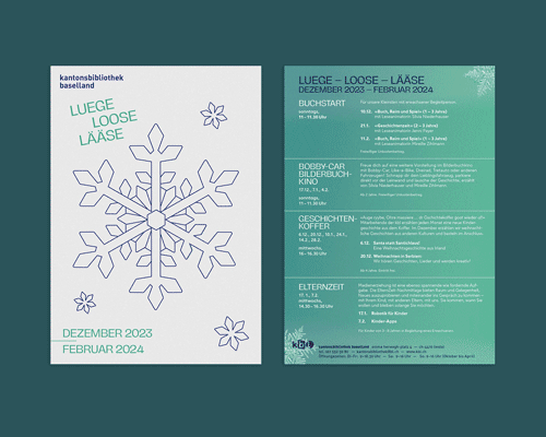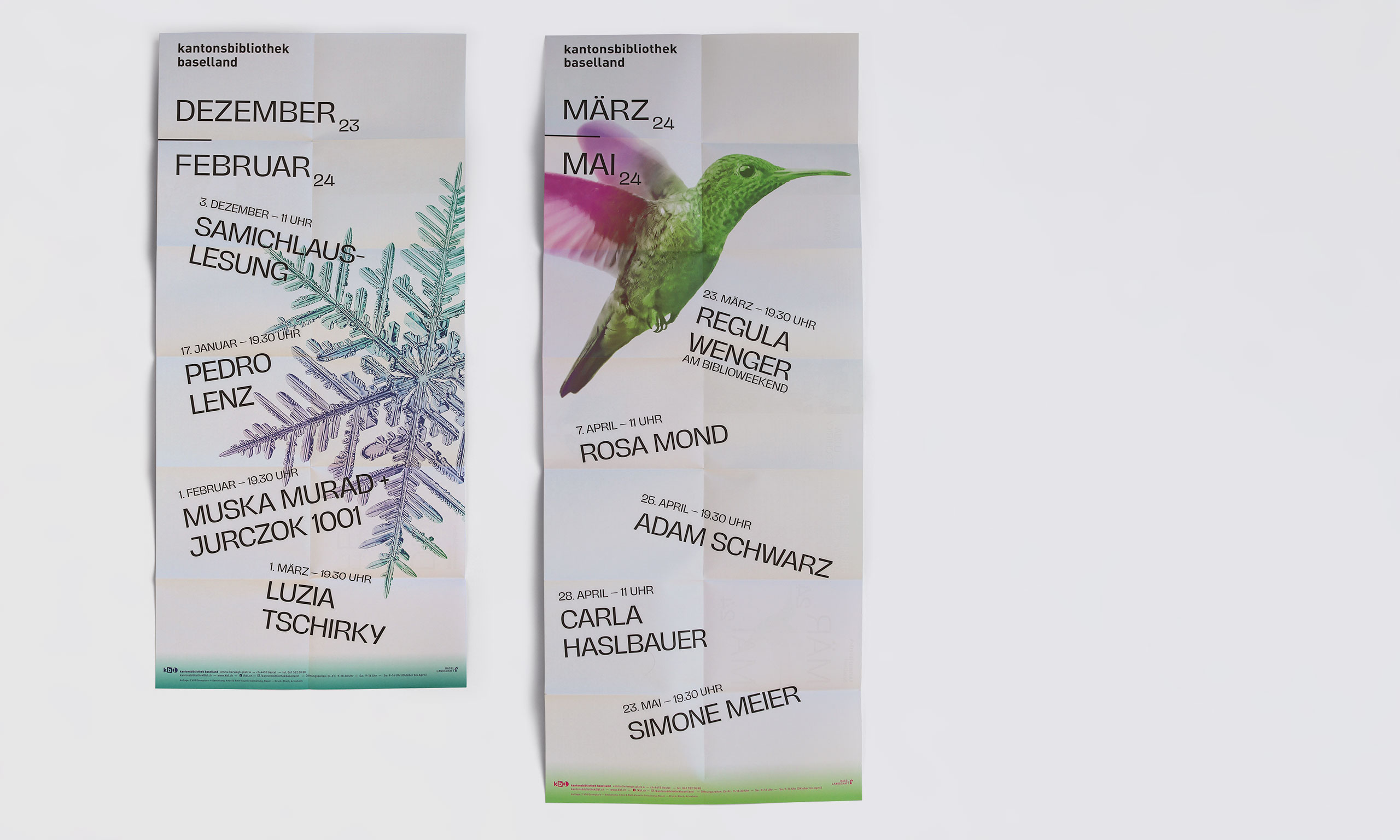 Gestaltung Programmheft und Plakat für die Kantonsbibliothek Baselland: Luftig geht es in die neue Saison. Wir gestalteten das Programmheft wie immer im handlichen Format. Dieses ist sogleich als Heft und Plakat konzipiert.